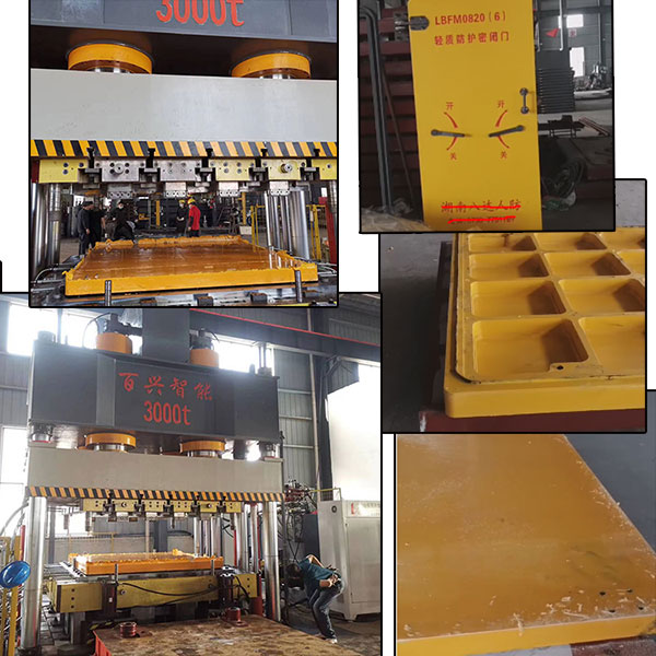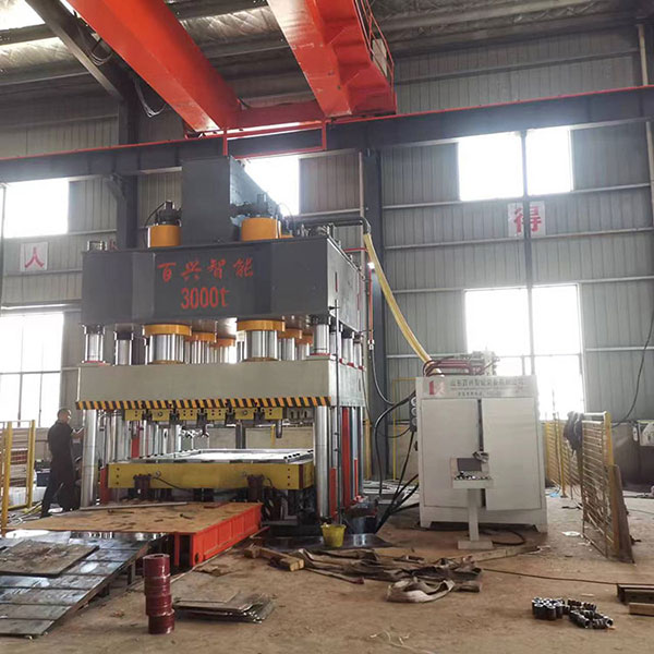 下图是给湖南用户定做的3000吨四柱油压机,用于生产防火板耐火门。