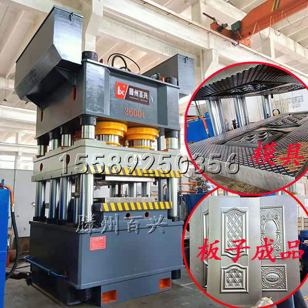 3600吨双动门板压花机适用领域:适用于不锈钢门板压花,镀锌板门面压花,防盗门室内门防火门门板压花纹工艺。
